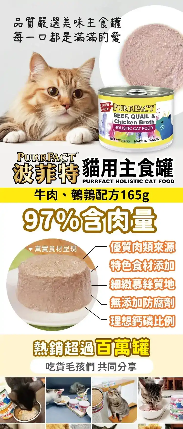 PURRFACT波菲特 牛肉鵪鶉貓用主食罐165 g(12罐組)