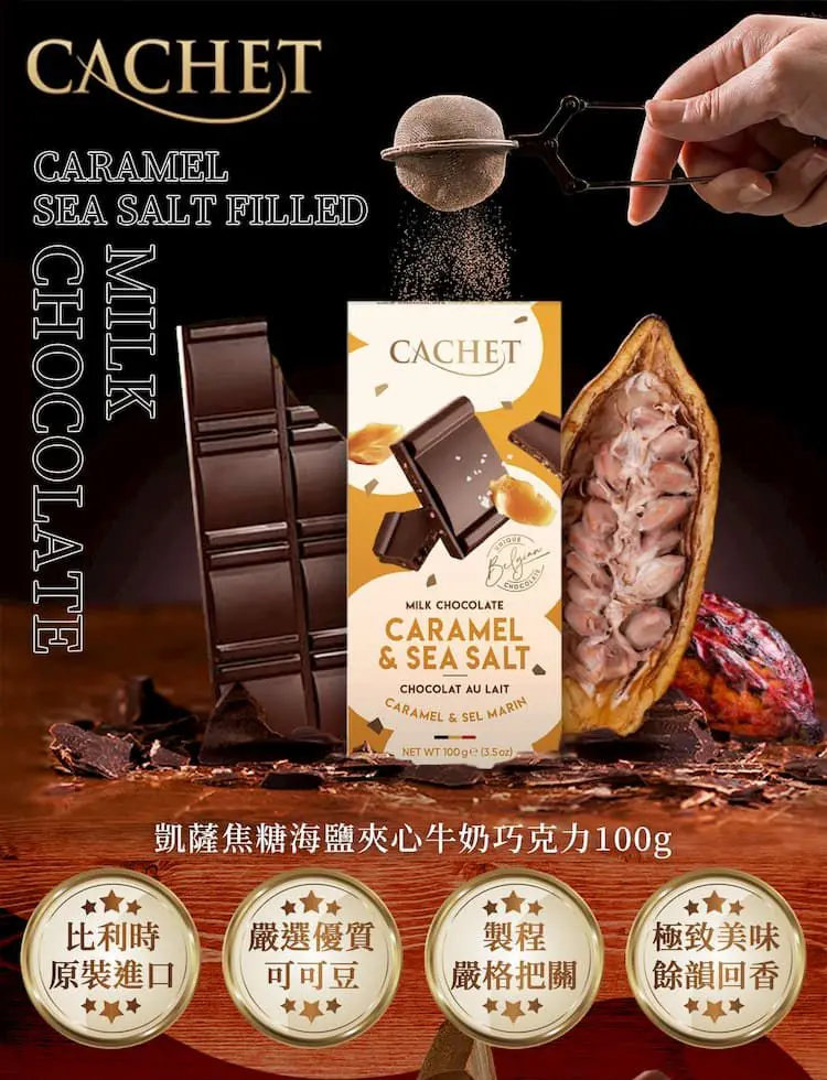 比利時 Cachet 凱薩 焦糖海鹽夾心 牛奶巧克力