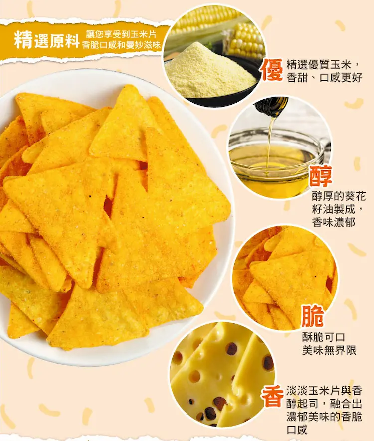 成份:玉米粉,葵花籽油,奶粉,鹽,番茄,葡萄糖,起司粉(芝士,磷酸氫二鈉(品質改良用),乳清粉),大蒜,洋蔥,乳清粉(牛奶),糖,調味劑(DL-蘋果酸),香辛料提取物(紅椒粉) *本產品含有牛奶製品