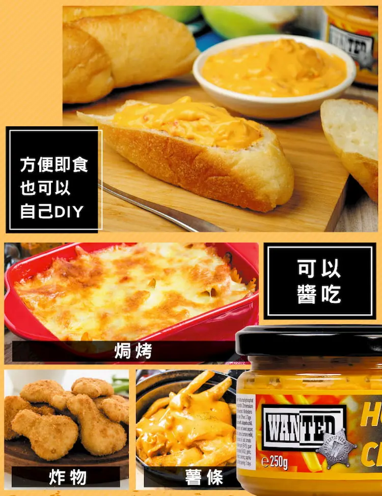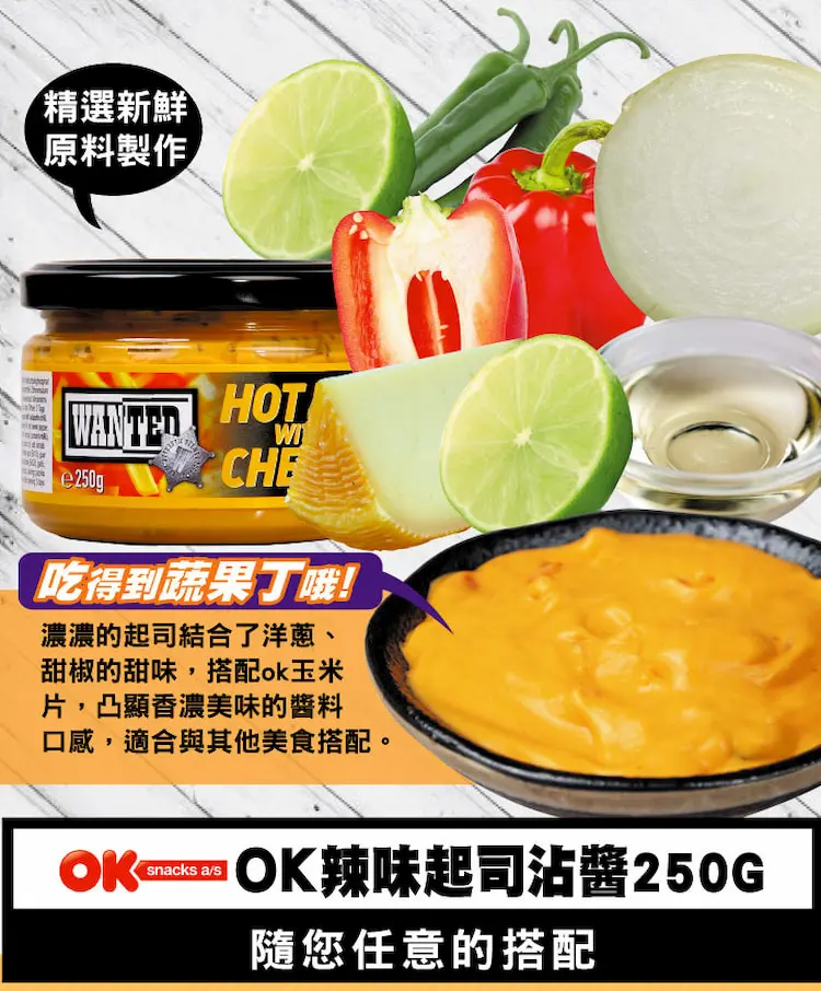 成份:水、起司、油菜籽油、紅甜椒、酸處置澤粉、洋蔥、墨西哥辣椒、香料(含牛奶)、5′-鳥谷嘌呤核苷磷酸二鈉、5’次黃嘌呤核苷磷酸二鈉、奶脂、椰子油、鹽、番茄醬(紅茄、醋、高果糖玉米糖漿、鹽分、洋蔥粉、天然辣椒香精、水果香精、鹽巴香精鹽巴香木香豆、香精鹽巴香豆、香精鹽巴香豆、香果香精鹽巴香豆、香精鹽巴香豆鹽香豆糖、鹽巴香豆鹽巴香豆鹽香豆鹽香豆糖)、香精鹽巴香豆、香精鹽香豆鹽、香精鹽巴香豆、香精鹽巴香果。物(辣椒)、紅椒色素。 農產品含有牛奶製品