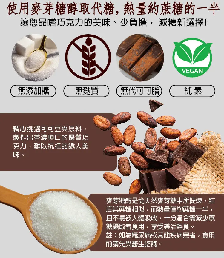 成分:可可塊,甜味劑(麥芽糖醇),可可脂,脫脂可可粉,菊糖,葵花籽卵磷脂,天然香草香料